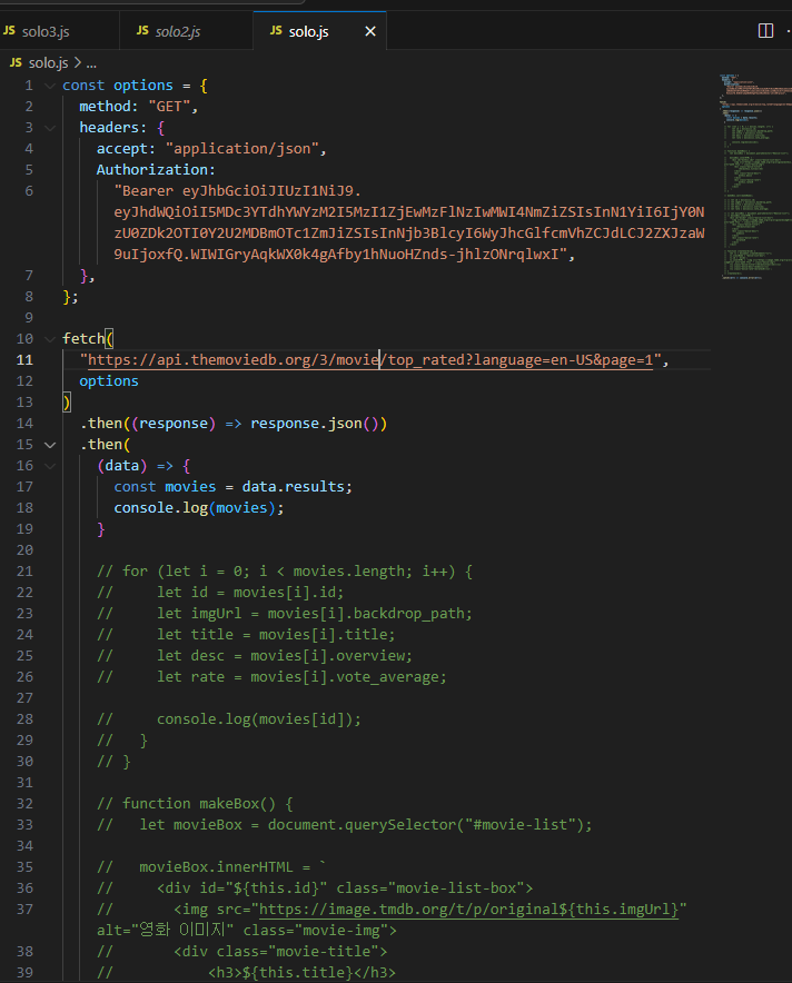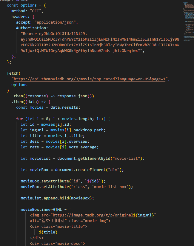 결론적으로는 api를 이용해 각 카드를 .movie-list-box라 칭하고, 그 카드가 모이는 리스트를 #movie-list라 칭하였다.